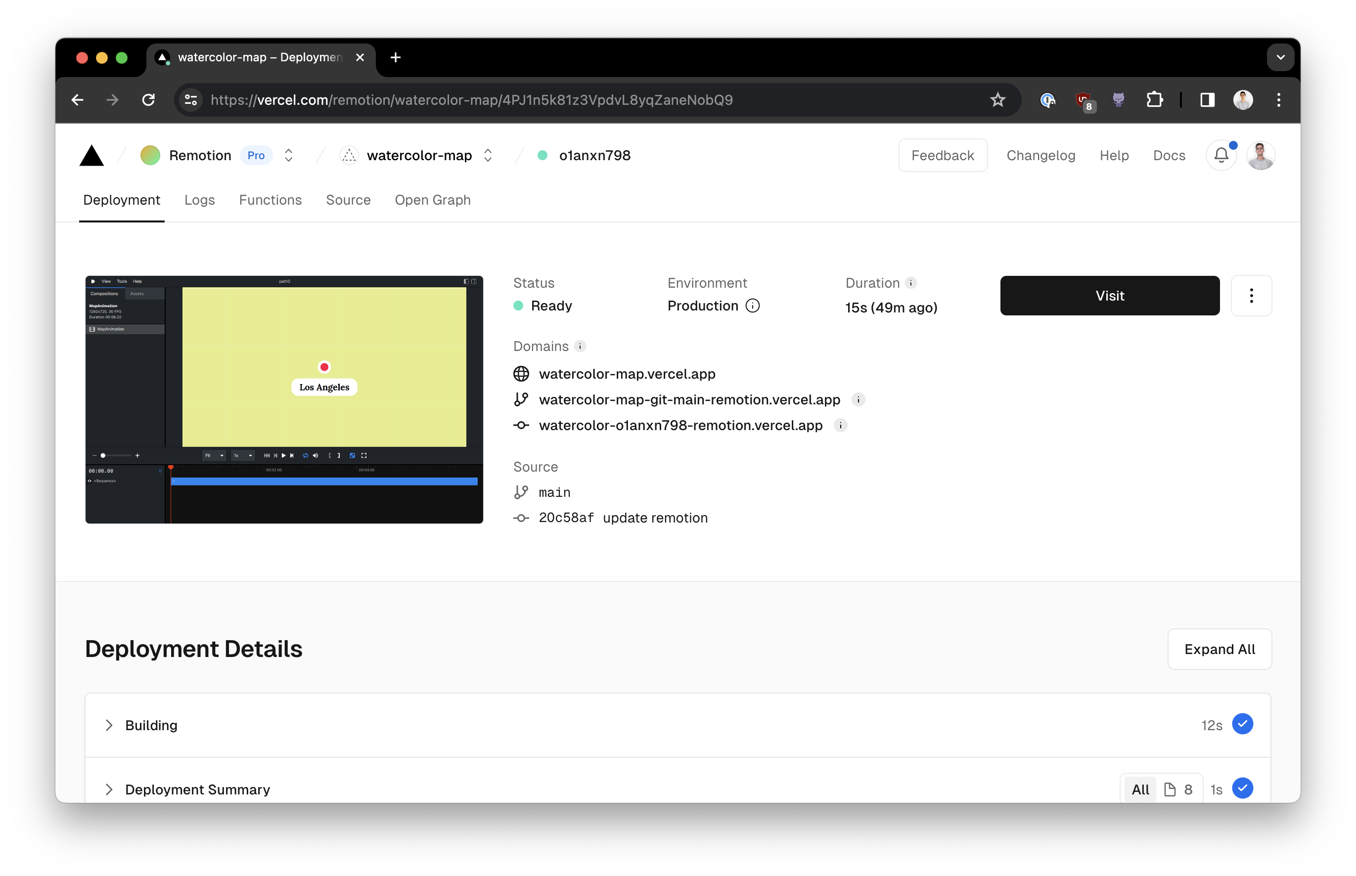 npx remotion render https://watercolor-map.vercel.appYou can use --props to parameterize the video.