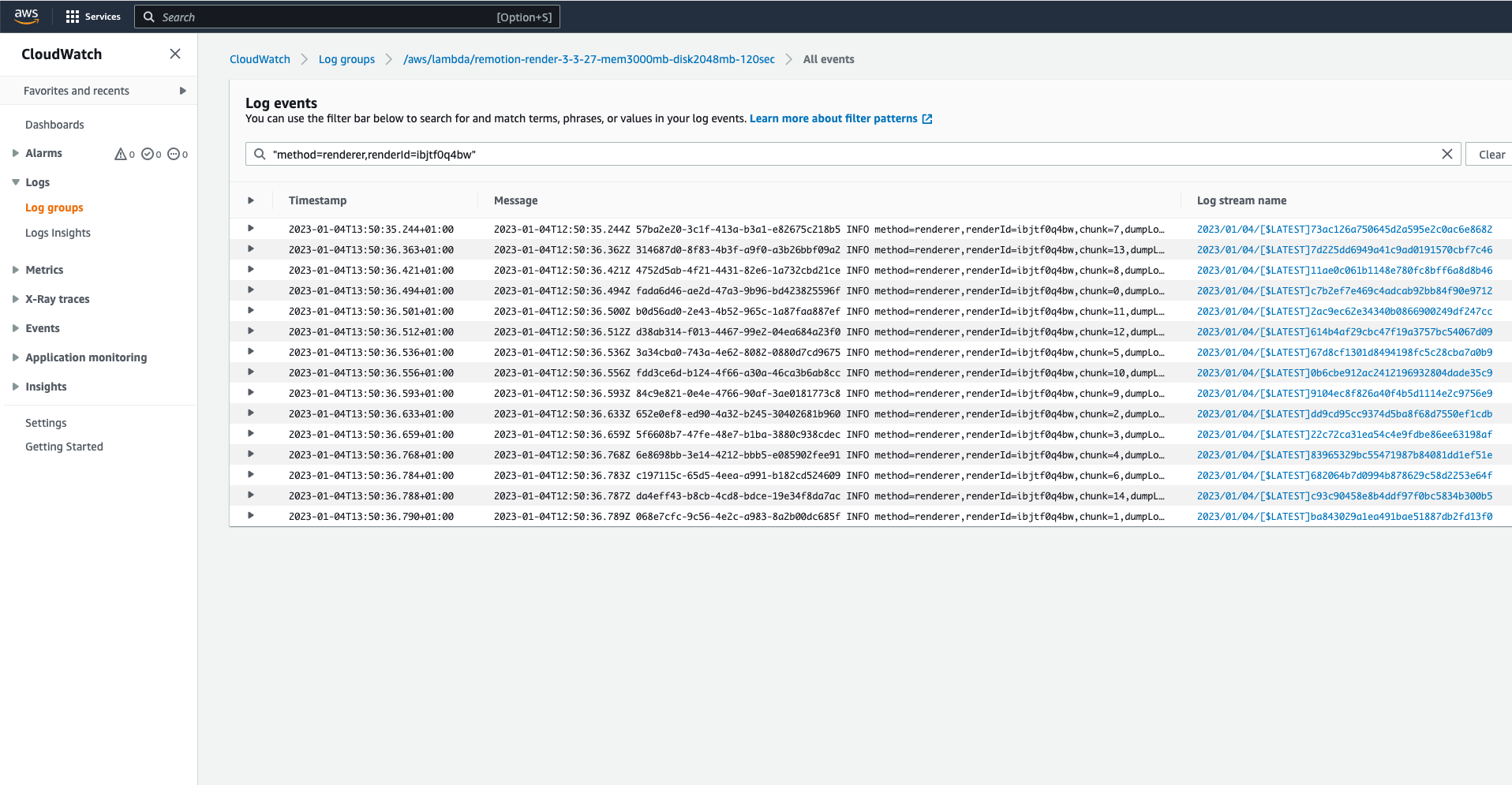 renderMediaOnLambda()时,添加logLevel: "verbose"作为选项。你将在返回值中得到一个cloudWatchLogs字段。